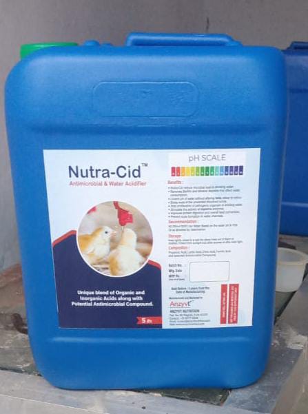 A stronger acidifier for pH reduction Nutra-Cid is a stronger blend of organic acids formulated for water pH reduction. It is a high-quality, concentrated product; for efficient and cost-effective acidification. Nutra-Cid can be added to the water at a lower rate than other acidifiers